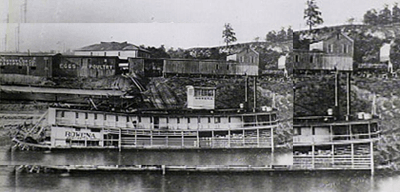 The Lumber store, left was among the buildings moved at Burnside, Ky. Before the lake, steamboats were common sights along the Cumberland River, including the steamer Rowena, shown below.